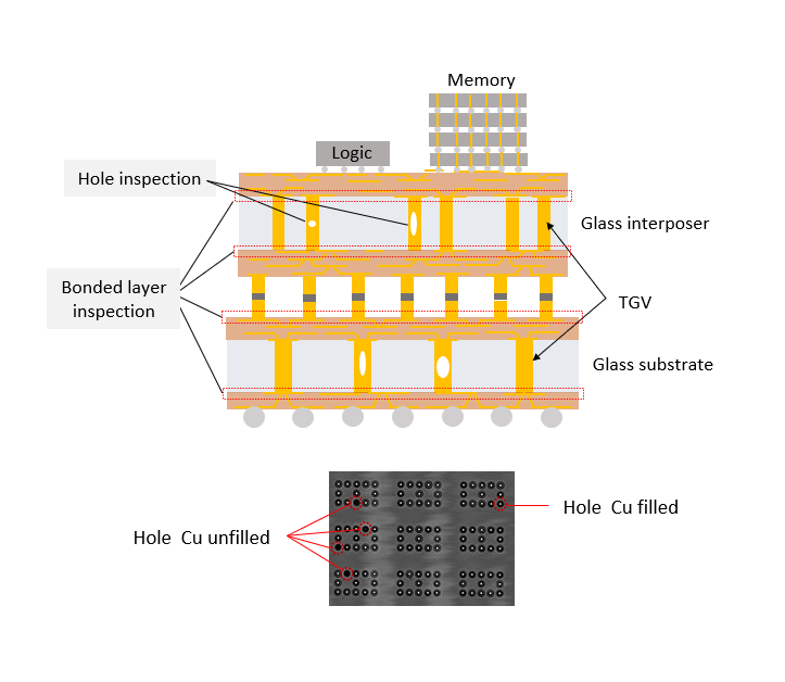■ Glass interpsoser & Glass substrate의 TGV (Through Glass Via)의 hole 충진 여부 검사
