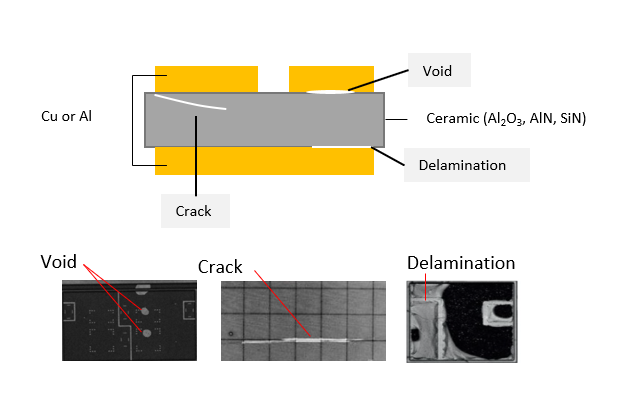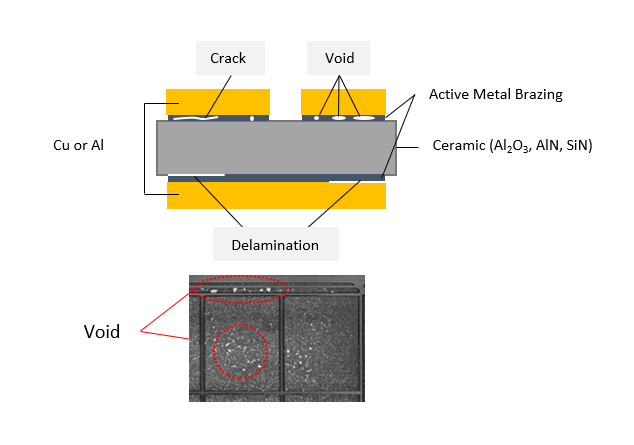 ■ DCB or AMB 기판의 상하부 접합면의 보이드, 크랙, 박리 등의 결함 검사