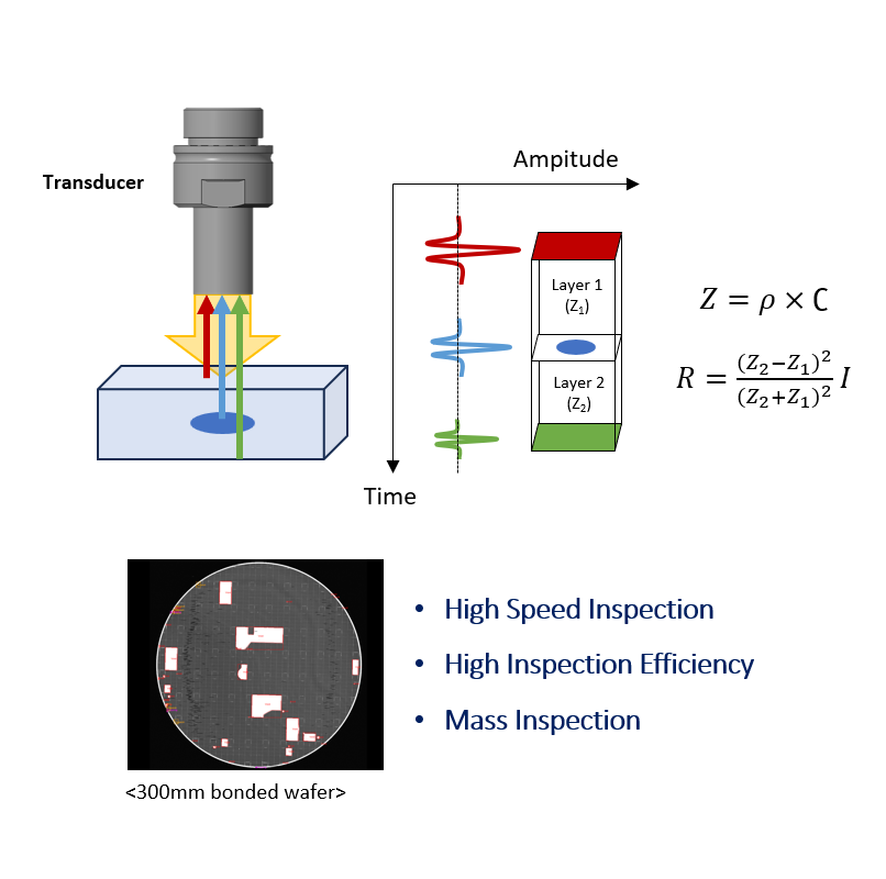 ■ 육안으로 확인할 수 없는 시료 내부를 초음파 신호를 이용하여 보이드, 크랙, 박리 등의 결함에 대해서 실시간 영상 이미지로 결함을 분석